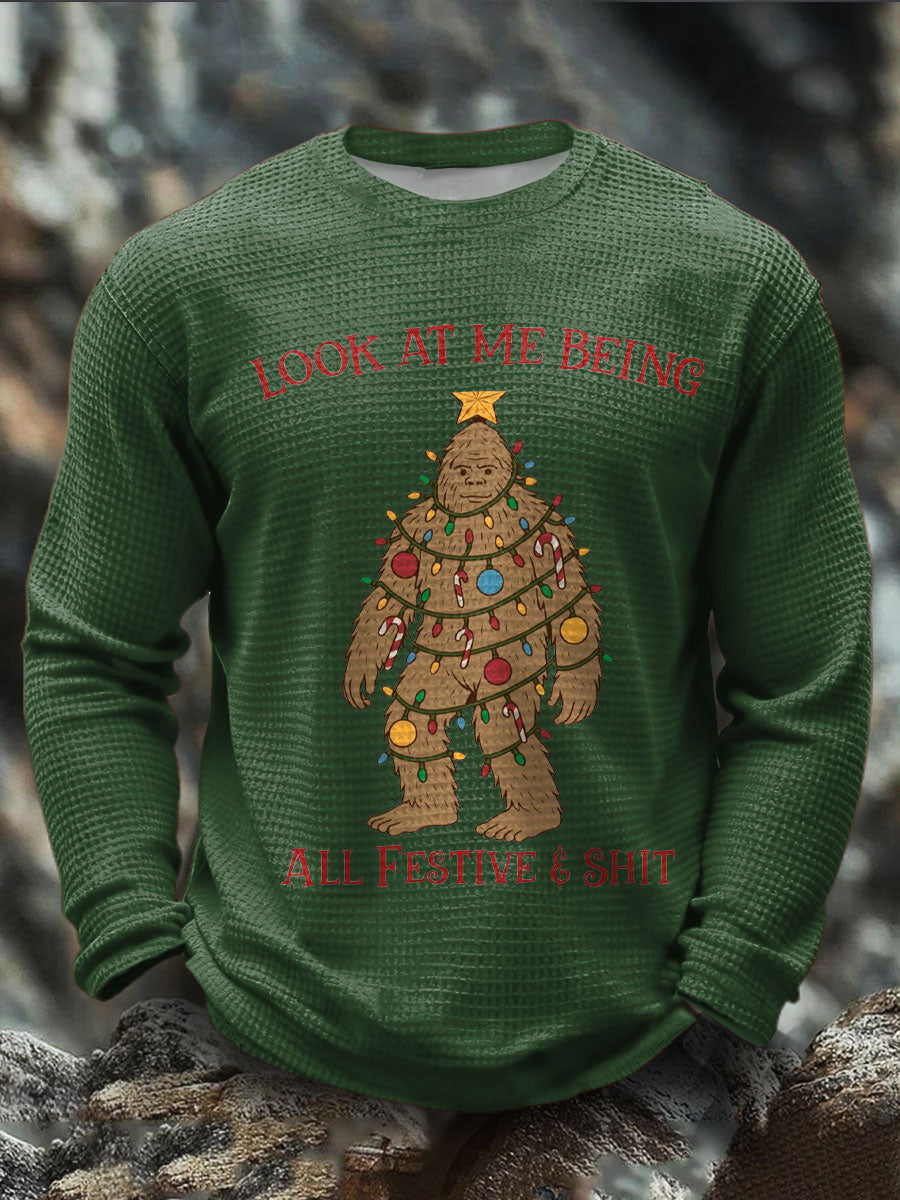 Men's Funny Bigfoot Christmas Printed Waffle Tops