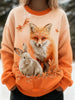 Women's Best Partner Fox And Bunny Print Casual Flannel Sweatshirt