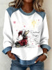 Women's Christmas Dachshund Through The Snow Print Casual Denim Patchwork Top