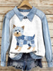 Women's Denim Patchwork Yorkshire Terrier Dog Pattern Sweatshirt