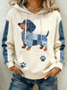 Women's Lovely Dachshund Pattern Denim Patchwork Art Hoodie