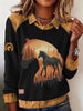 Women's Retro Horse Print Horse Lovers Casual Sweatshirt