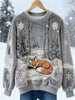 Women's Winter Fox Print Casual Flannel Sweatshirt